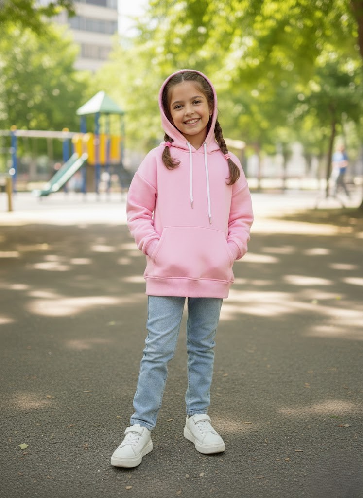 Hem oyun parkında hem de okulda konforun yeni adı! Yumuşacık dokusu ve modern kesimiyle öne çıkan bu pembe kanguru cepli sweatshirt, küçük hanımların gardırobunun en sevilen parçası olmaya aday.